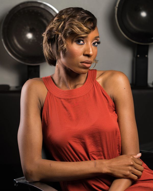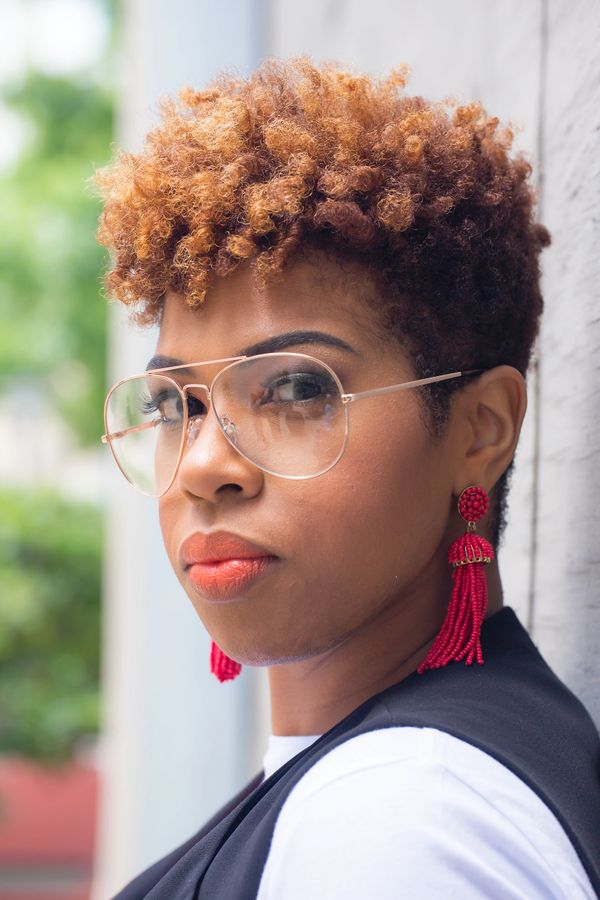 Hair coloring, incorporating either crown highlights or full-head highlights application. Styling with hot tools is done on both relaxed and natural textured hair.